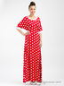 Женственное платье модного дизайна длины макси. Модель с короткими рукавами выполнена из ткани актуального цвета в контрастный горох. Дополнено изделие поясом, завязывающимся на спине. Эта вещь станет прекрасной составляющей Вашего летнего гардероба.