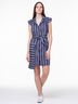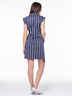 Сарафан полуприлегающего силуэта. Графику полосы подчеркивает большой карман. Можно носить как тунику. Застежка на кнопки.
