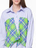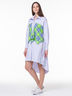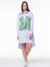 Платье - рубашка свободного силуэта. Отлетные детали из контрастной ткани необычно смотрятся. Застежка на кнопки. В комплекте два пояса для фантазийных завязок.