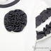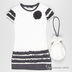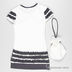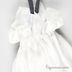 Классическое платье слегка приталенного кроя. Выполнено из приятного на ощупь материала, круглый вырез, короткие рукава. Рукава и низ изделия украшены многослойными рюшами, на полочке декоративный цветок. В комплект входит сумочка-мешок на кулиске и веревочке.
