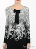 Детали: округлый вырез горловины, длинный рукав, полочка украшена тканевым бантом, без застежки, принты