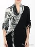 Детали: широкий ворот-хомут, оригинальный присборенный рукав, вставка с принтами, оригинальный подол