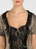 Детали: округлый вырез горловины, короткий прямой рукав, полочка декорирована гипюровым кружевом и небольшой драпировкой