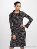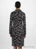 Очаровательное приталенное трикотажное платье. Широкий воротник хомут. Длинные цельнокроеные рукава. Благодаря покрою прекрасно сидит на фигуре. Декорировано нежно-розовым рисунком.