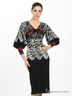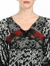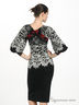 Детали: широкая круглая горловина, длинные цельнокройные рукава, черные кружевные вставки