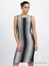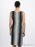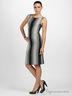 Приталенное трикотажное платье из шелковисто, приятного на ощупь трикотажа с серебристым блеском. Широкая круглая горловина. Без рукавов.