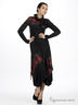 Детали: ворот-хомут, присборенный длинный рукав, полочка декорирована тканевой брошью, фигурные вытачки, ассиметричный подол с завязками, в комплекте бусы
