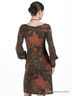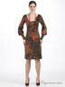 Классической платье из плотного шерстяного материала. Приталенного кроя. Круглый вырез, длинные рукава с широкими манжетами, на полочке декоративный цветок.
