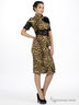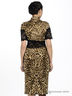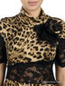 Детали: ворот-хомут, оригинальный кружевной рукав, ассиметричная кружевная вставка и тканевая оборка на уровне талии, тканевая брошь на полочке