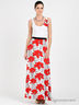 Детали: глубокий круглый вырез горловины, тонкие бретели, декор в виде цветка из основного материала, платье отрезное по линии талии, юбка в пол.