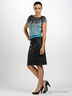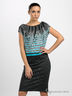 Элегантное и оригинальное трикотажное платье из теплого, приятного на ощупь трикотажа. Широкая круглая горловина посажена на кулиску, что позволяет регулировать ее ширину. Заниженные проймы. Отрезной лиф с напуском. Приталенная юбка с леопардовым принтом прекрасно подчеркивает бедра.