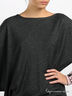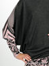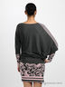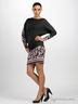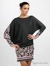 Трикотажное платье оригинального ассиметричного кроя. Выполнено из мягкого, теплого, приятного на ощупь материала. Круглая горловина. Длинные цельнокройные рукава. Свободный покрой не стесняет движений. Декорировано нежно-лилиовым рисунком.