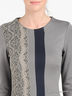 Великолепное платье приталенного кроя из плотного трикотажа средней эластичности. Круглый вырез, длинный рукав, декорировано контрастными вставками и кружевными нашивками. Отлично подходит для прогулок и выходов.