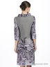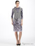 Весенне-осеннее платье из приятного на ощупь материала. Слегка приталенного кроя. Широкий воротник-хомут, рукава 3/4, спереди украшено декоративным бантом. Оригинальный принт.