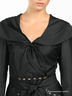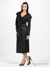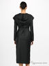 Стильное женское платье приталенного покроя с длинным рукавом. Оригинальный широкий капюшон. На полочке изделие декорировано бантиком и пришитыми стразами. В комплекте элегантный пояс.
