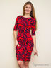 Платье с рукавами 3/4 и округлым вырезом горловины. Модель приталенного кроя выполнена из качественного материала привлекательной расцветки. Отличный вариант на каждый день.
