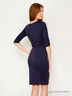 Платье с рукавами 3/4 и округлым вырезом горловины с вырезом. Модель приталенного кроя выполнена из качественного материала привлекательной расцветки. На спине застежка на молнию. Шлица сзади.