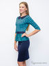 Платье с рукавами 3/4 и округлым вырезом горловины. Модель приталенного кроя выполнена из качественного материала привлекательной расцветки. Отличный вариант на каждый день. Изделие декорировано баской.