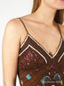 Детали: застежка на молнию, отрезной лиф на тонких бретелях, платье декорировано бисером, пайетками и стеклярусом