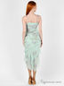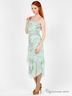 Детали: на тонких бретельках, отрезной лиф с плотными чашечками, сбоку застегивается на молнию и крючок, снизу многослойные широкие воланы, изделие украшено бисером и пайетками