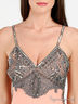 Детали: застежка на молнию на боку, тонкие бретели, отрезной лиф, изделие активно декорировано пайетками, бисером и стеклярусом