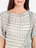 Детали: округлый вырез горловины дополнен лентой, завязывающейся в бант, короткий прямой рукав, платье декорировано оригинальной фалдой.