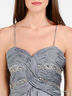 Детали: застежка на молнию на боку, тонкие бретели, отрезной лиф декорирован драпировкой и стразами с пайетками