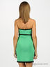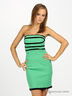 Комфортное и стильное коктельное платье без бретелек. Лиф декорирован черными полосками. Прекрасно сидит по фигуре, сильно подчеркивая талию. Застегивается на молнию сзади. Сдержанная и оригинальная модель выполнена в свежем зеленом цвете.