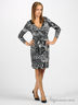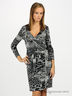 Комфортное и стильное платье с запахом из эластичного, приятного на ощупь материала. V-образная горловина прекрасно подчеркивает грудь. Рукава 3/4. Декорировано серебристой тесьмой. Талия подчеркнута поясом.