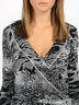 Комфортное и стильное платье с запахом из эластичного, приятного на ощупь материала. V-образная горловина прекрасно подчеркивает грудь. Рукава 3/4. Декорировано серебристой тесьмой. Талия подчеркнута поясом.