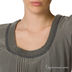 Стильное шелковое платье свободного кроя с длинными рукавами, круглым вырезом горловины и передними карманами. На груди находятся декоративные простроченные складки. Горловина, манжеты, карманы и край платья декорированы отделкой из валяной шерсти.