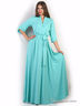 Платье в пол с воротником на пуговицах и рукавами 3/4. Модель оформлена поясом на талии. Прекрасный вариант для создания романтического образа.