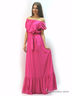 Замечательное платье-крестьянка однотонного цвета. Модель декорирована поясом на талии. Прекрасный вариант для создания романтического образа.