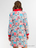 Платье выполнено из флиса. Изделие с длинными рукавами и отложным воротником. Модель выполнена в яркой, контрастной расцветке. Отличный вариант для повседневного использования.