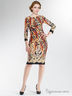 Платье приталенного кроя с рукавами 3/4 и округлым вырезом горловины. Без застежки. Яркая расцветка и рисунок привлекают внимание. Внесет разнообразие в Ваш летний гардероб.