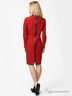 Однотонное, трикотажное платье -футляр длиной по колено, с круглым вырезом горловины и длинным рукавом, декорировано: металлической молнией в зоне спины, деталями из "эко-кожи" по вороту-стойке и нижнему канту.