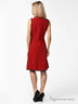 Однотонное трикотажное платье без рукавов, длинной по колено и воротником стойкой, декорировано: металлической молнией по передней планке и деталями из "эко-кожи" в зоне плеч и нижнему канту.