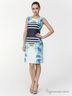 Трикотажное коктейльное платье чуть выше колен без рукавов с круглым вырезом горловины, украшено фотопринтами.