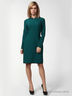 Однотонное, трикотажное платье -футляр длиной по колено, с круглым вырезом горловины и длинным рукавом, декорировано: металлической молнией в зоне спины, деталями из "эко-кожи" по вороту-стойке и нижнему канту.