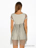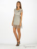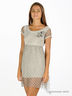 Платье свободного кроя. Круглый вырез горловины. Прозрачные короткие рукава. На груди декоративный элемент в виде цветов из сеточки. Под грудью обработка тесьмой, завязки. Двухслойная юбка: внутренний слой из тонкого трикотажа, внешний из сеточки.