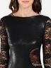 Детали: округлый вырез горловины, длинный прямой рукав, полочка декорирована гипюровой кружевной вставкой, глубокий вырез на спинке
