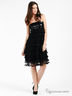 Стильное вечернее платье расклешенного силуэта. Выполнено из эластичной ткани. Отрезной эластичный топ дополнен пайетками и тонкими регулируемыми бретельками. Изделие украшено многослойными сетчатыми воланами с атласными лентами. Будьте неповторимы!