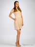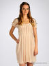 Нежное платье пастельного тона придаст Вашему образу романтичности и изысканности. Платье прямого кроя. Полочка и короткие рукава декорированы проклепанными складками.