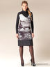Стильное ультрамодное платье полуприлегающего силуэта, построенное на сочетании вискозного трикотажа и креп-шифона на полочке с актуальным монохромным принтом. Комфортный воротник-хомут на V-образной горловине, отделка «под кожу» и металлические молнии.