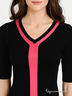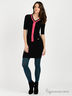 Детали: V-образный вырез горловины, укороченный рукав, низ изделия - трикотажная резинка, контрастная вставка по вороту и на полочке
