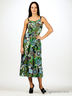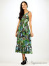 Длинный летний сарафан без рукавов, талия-широкая многорядная резинка. Сарафан украшен ярким цветочным принтом и тремя пуговицами из стекляруса.
