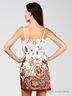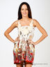 Легкое летнее платье-туника на бретелях, украшенное ярким цветочным принтом и аппликацией в виде цветов из шифона.