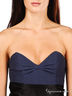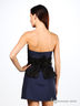 Коктельное платье без бретелек, украшенное сзади длинной черной атласной лентой. Отрезной лиф прекрасно подчеркивает грудь. Застежка-молния на спине.