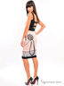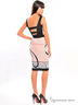 Трикотажное платье - футляр с отрезной линией талии на широких бретелях. Модель с открытой зоной спины и декольте. Платье декорировано контрастным принтом.