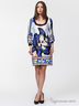 Свободное платье с рукавами 3/4 и округлым вырезом горловины. Яркий цветочный принт по передней планке и геометрический по задней. Отличный вариант для Вашего гардероба.